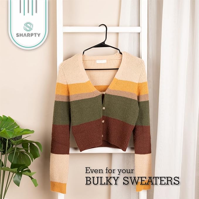 - π MAXIMIZE SPACE AND KEEP ORGANIZED: Sharpty PLASTIC HANGERS are designed with a slim profile to make the most of your closet space while keeping it neat and tidy! Save time while getting dressed with our high quality hangers, as you can easily find the clothes you need.