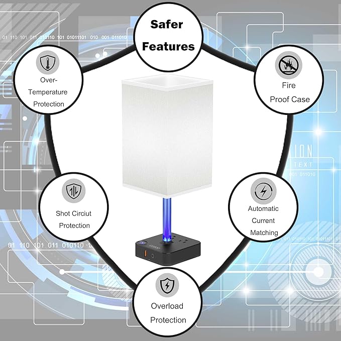 - 【2 USB A+C Ports & 2 AC Outlets】The base of this decorative and unique desk and table bedside lamp contains 2 USB port and 2 outlets power strip so that you can charge your mobile phones, tablets, laptops, and other electronic devices. The USB port functions regardless of whether the lamp is on or off. It will look beautiful in any contemporary home or office.