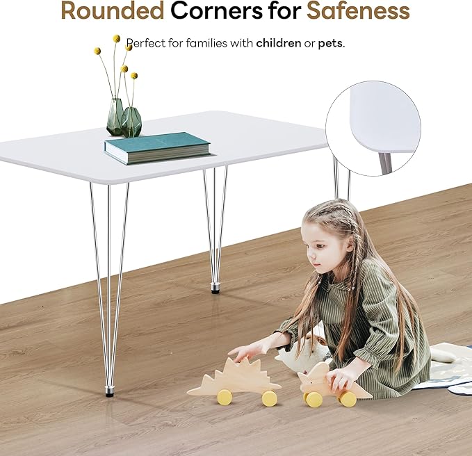 - Rounded Corners for Safeness: This rectangular dining table features rounded corners, ensuring a safe dining experience by eliminating sharp edges, perfect for families with children and preventing accidental bumps