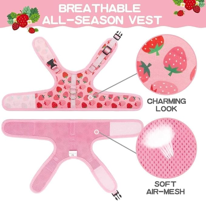 - 🍓[CUTE PATTERN]: The lovely strawberry pattern on the kitten harness will make your girl more charming and lovely, she will be a pretty princess. You and your sweet kitten will definitely love this amazing harness