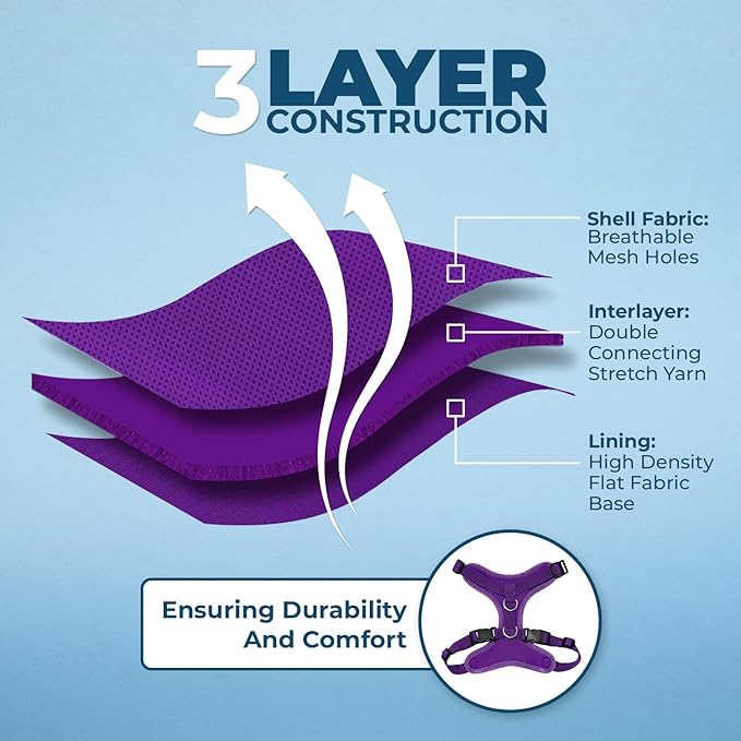 - ALL WEATHER AIR MESH: Made a soft, breathable air mesh, this fully adjustable and lightweight pet harness is perfect for walks all year round