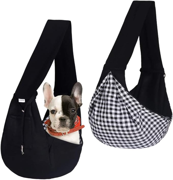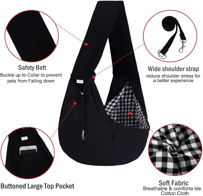 FDJASGY Small Pet Sling Carrier-Hands Free Reversible Pet Papoose Bag Tote Bag with a Pocket Safety Belt Dog Cat for Outdoor Travel Black