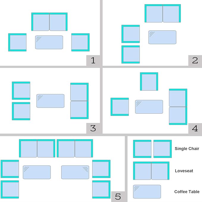 - Multi-functional Usage: The outdoor furniture set features 2 single chairs, 1 loveseat and 1 coffee table, which can be combined freely according to different occasions. It is ideal for your dining room, patio, balcony, garden, courtyard or poolside, offering the joyful and stunning leisure.