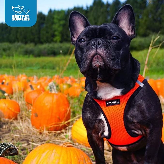 Best Pet Supplies Voyager Step-in Air Harness - All Weather Mesh, Reflective, No Pull Harness for Dogs, Cats - Secure with Hook & Loop Fastener, Buckle, Double D-Rings - Orange/Black Trim, XXXS
