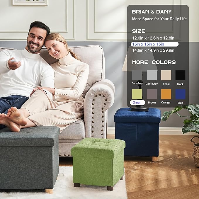 BRIAN & DANY 15 Inches Ottoman with Storage, Square Small Storage Ottoman Foot Rest with Legs, Ottomans Foot Stool for Dorm, Living Room, Entryway (Bright Green)