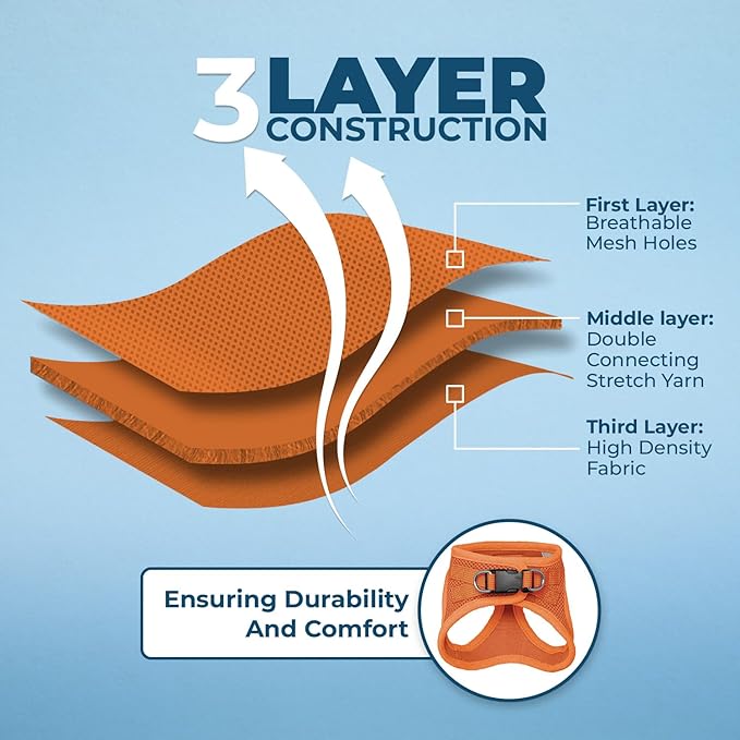 - Comfort All Year: Made with a soft and breathable air mesh, this lightweight, fast drying harness ensures maximum comfort for your pet during walks, regardless of the season