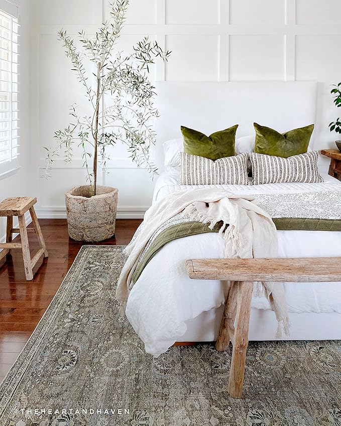 Loloi Layla Collection LAY-13 Antique/Moss 3'-6" x 5'-6" .13" Thick Accent Rug, Soft, Durable, Vintage Inspired, Distressed, Low Pile, Non-Shedding, Easy Clean, Printed, Living Room Rug