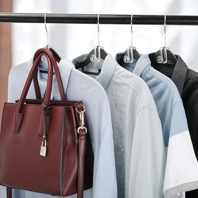 - Space Saving: The connector hook can be used to hang on the hanger to connect the next hanger, which makes it easy to organize clothes to free up some closet space. Neat and clear, you can easy to find the clothes you want