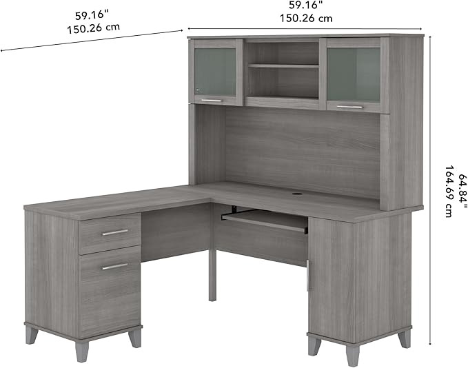 - Bundle includes: 60W L Shaped Desk with Storage, 60W Desk Hutch