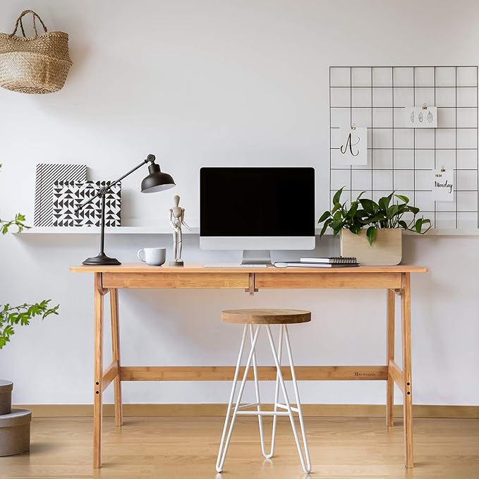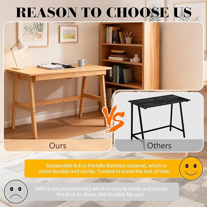 Nnewvante Writing Computer Desk 46" Bamboo Home Office Table with 2 Drawers, Modern Furniture Simple Study Makeup Workstation