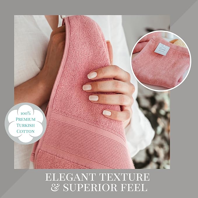 Luzia 8 Piece Bathroom Towel Set - 100% Turkish Cotton, Premium Quality - 2 Bath Towels 2 Hand Towels and 4 Washcloths (Coral)