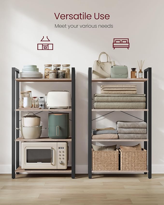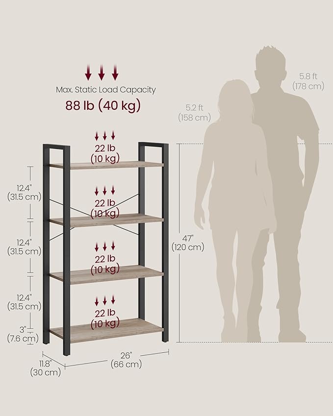 - Built to Last: A smart mix of quality particleboard and a sturdy steel frame allows this robust 4-tier bookcase to hold up to 88 lb, giving your items reliable support for years to come