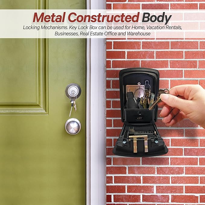 - 🔑 Heavy-duty outdoor security – built from reinforced zinc alloy and aluminum, this XXL key lock box withstands cutting, prying, hammering, rust, and harsh weather.