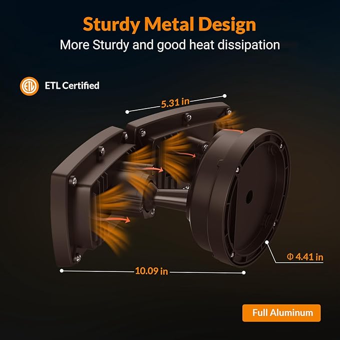 - Full Metal Design Security Lights: The led flood light outdoor is made of full aluminum with good heat dissipation,so which is more solid than other brands, wonderful to light up your backyard, garage, porch, entryways, barn, shop, garden, stair or alley etc outdoor usage; The lifespan will be up to 50,000 hrs