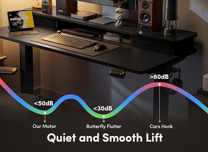 - Electric Height Adjustable: FEZIBO standing desk has reliable motor that could support height adjustment between 27.36''-46.06'' with low noise(under 50 dB) while running