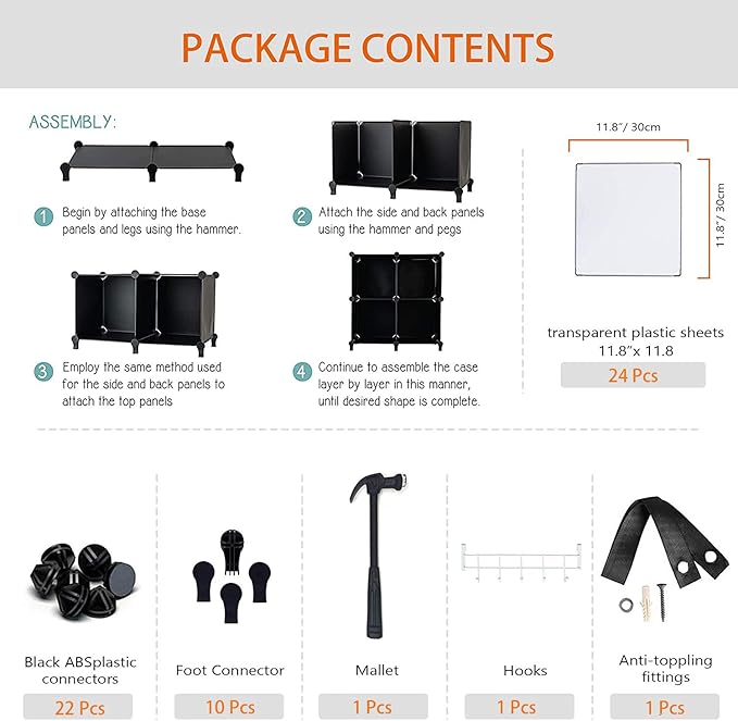 - 【Easy to assemble and disassemble】: It's a simple module structure. Following the guide, check if every sheet is fully locked in the connector after finishing every layer assembling, then, you shall get a firm storage organizer.