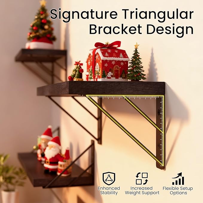 - Create a stylish display with our rustic wall-mounted shelves. Perfect to display decor, these offer ample space for books, decor, and more. The black finish makes them a versatile addition to any room, enhancing your overall decor.