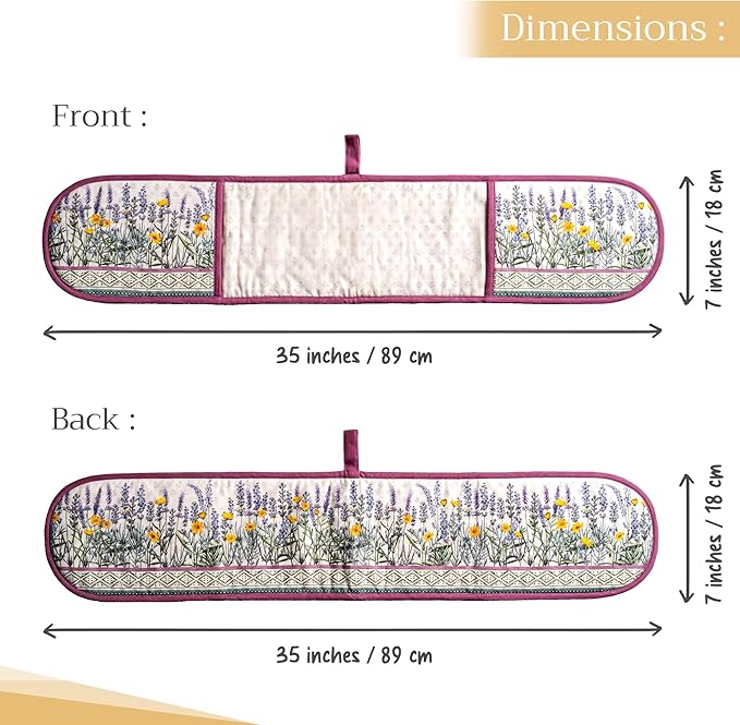 - Package includes: Includes 1 double oven mitt sized 7"x35". Perfect for handling hot cookware safely while adding a touch of European elegance to your kitchen. Designed in Europe and made in India with care