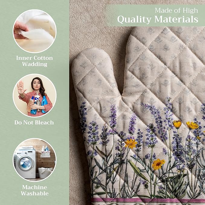 Maison d' Hermine Oven Gloves 100% Cotton Oven Mitt 7" x 13" with Loop Heat Resistant, BBQ, Cooking Gloves, Baking, Grilling, Kitchen, Handling Hot Pans Spring/Summer (Pack of 1, Fanny Lavender)