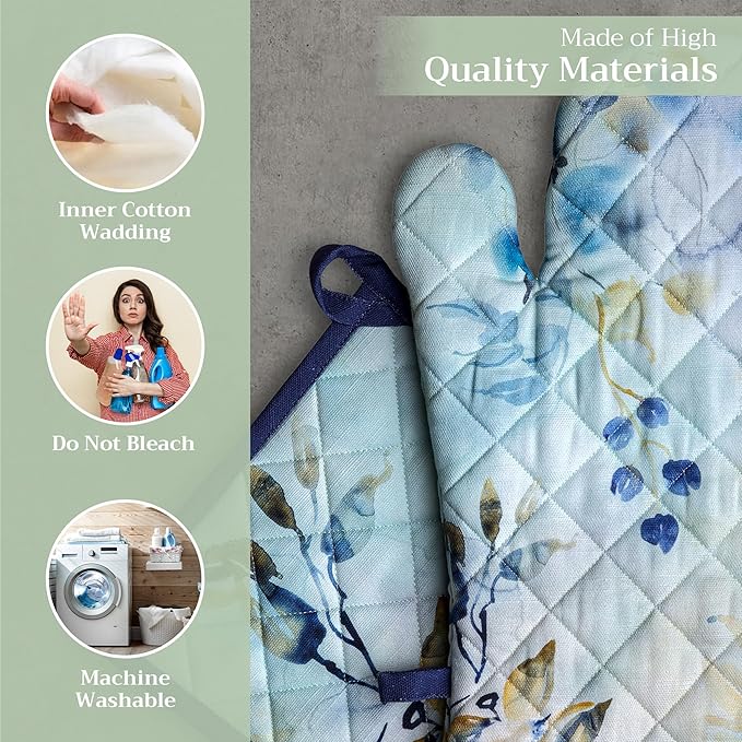 - Premium Quality: Crafted from quilted 100% cotton, this heat resistant oven mitt and pot holder set offers comfort, flexibility, and protection from hot cookware. Ideal cotton oven mitts for daily kitchen use and cooking safety