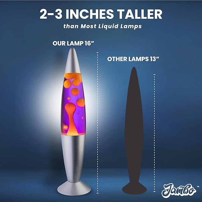 JAMBO 16" Beautiful Lamp- Purple with Yellow/Orange Wax, Relaxing Liquid Light, Night Light Nightlight, Home Decor Living Room Office Bedroom Lamp for Adults Teens Kids Magma Motion