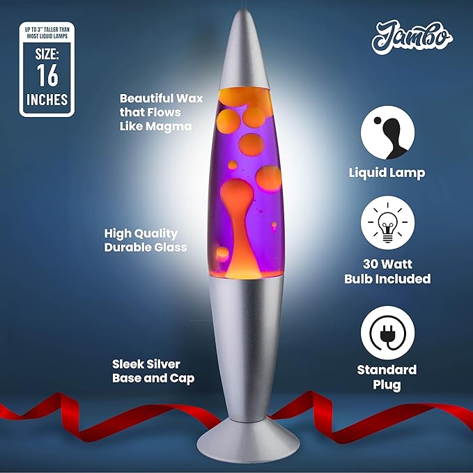 - HIGH QUALITY MATERIALS, DURABLE CONSTRUCTION: Rest assured, your Jambo Liquid Lamp will last for years. The Liquid Motion Lamp is specially designed and made with high quality materials and workmanship. You will be thrilled with how stunning this lamp is, how the wax in this lamp flows around the lamp and how long this lamp lasts you.