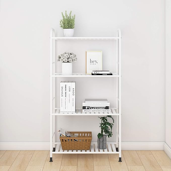 JSB 4-Tier Adjustable Shelving Unit, Heavy Duty Storage Rack Organizer Metal Corner Shelf for Kitchen Living Room Laundry Pantry Bathroom (White, 4 Tier)…