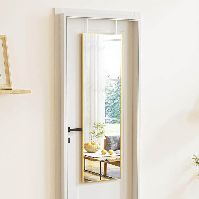 - Perfect Size: 14×48 inch door mirror full length, thin frame design, perfectly reflect to your whole body. This over the door mirror is designed with simplicity and precision, ergonomic mirror seamlessly integrate into living spaces while providing a practical full-body view.