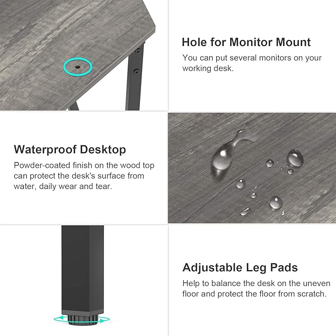 - Durable & Sturdy Construction: The gaming desk is constructed by high-quality P2 class particle board with the adjustable leg pads which ensures stability and durability. We designed a hole (Diameter 0.39'') to install a monitor mount conveniently.