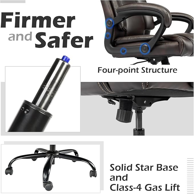 - Sturdy Structure - We have reinforced the structure of the chair by using better material with stronger strength. This chair has gone through a series of tests and its quality exceeds BIFMA standards, which means they have been rigorously tested to exceed industry standard quality and durability requirements. Especially, the Class 4 gas lift allows you to raise or lower the chair smoothly and safely.