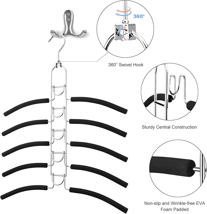 - ✔【Space Saving】- Only taking up space of 1 hanger and hang up to 5 shirts, blouses, suits, jackets, coats, sweaters, pants and dresses ect. Free up to 80% space, maximize to save space in your closet and give a tidy look to it.