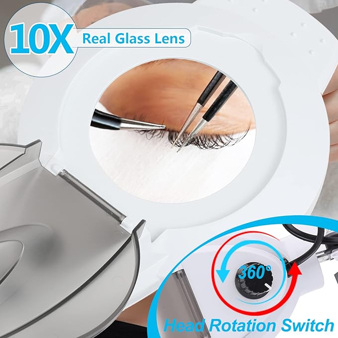 - 10X Magnification: This lamp comes with a 4β real glass lens, magnification up to 10X / 1000%, clear and without optical distortion, doesnβt fog like cheap acrylic or plastic lenses, protects eyes and reduces eyes strain. This lamp boasts the largest authentic diopter glass magnifier lens available with a 15 inch plus focal range. Best choice for anyone who needs to constantly focus close up or anyone with vision problems such as aging eyes or macular degeneration.