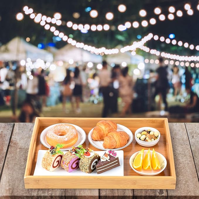 - LIGHTWEIGHT AND STURDY: The dinner food tray is constructed from premium bamboo wood, ensuring robustness and durability, withstanding heavy daily usage in both household and restaurant settings without easily cracking
