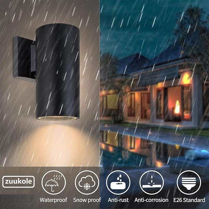 Outdoor Wall Light, Exterior Lighting - ETL Listed, Die-cast Aluminum Anti-Rust Waterproof Wall Mount Cylinder Design – 1-Direction Up or Down Light Fixture for Porch, Garage, Doorway or Patio