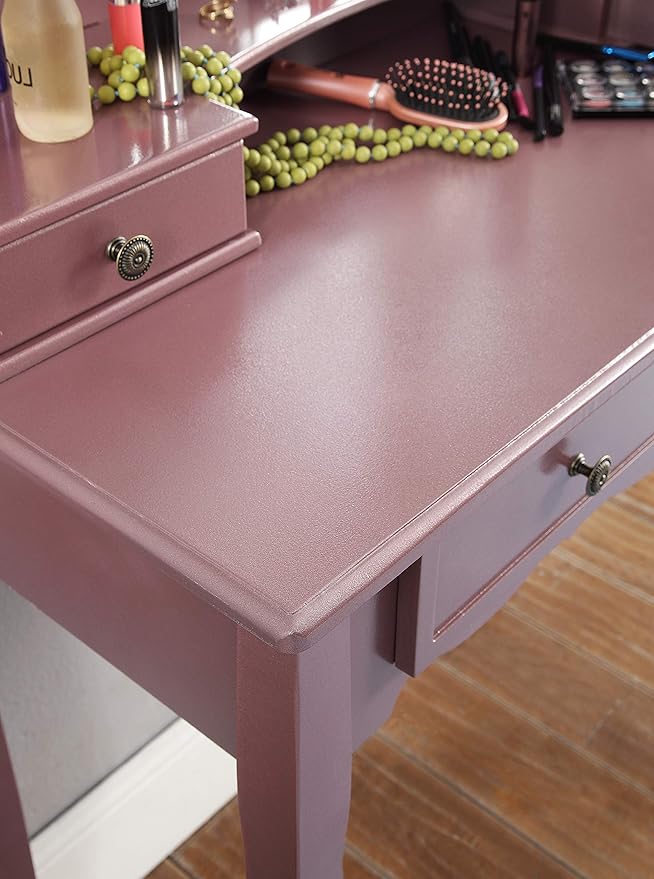 Roundhill Furniture Sanlo Wooden Vanity, Make Up Table and Stool Set, RoseGold
