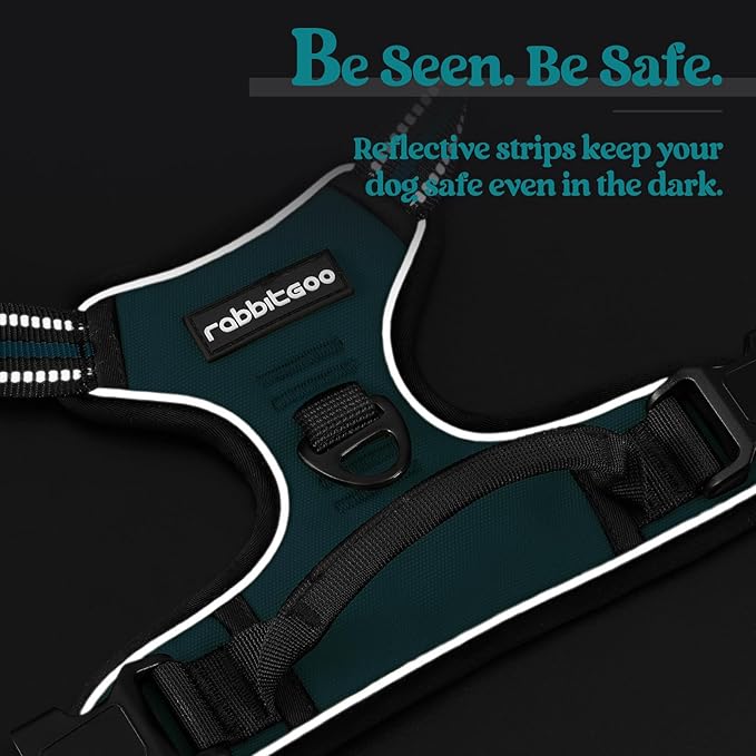 rabbitgoo Dog Harness No Pull with 2 Leash Clips, Adjustable Soft Padded, Reflective Oxford No Choke Pet Vest with Easy Control Handle for Medium Sized Dogs, Blue Coral, M