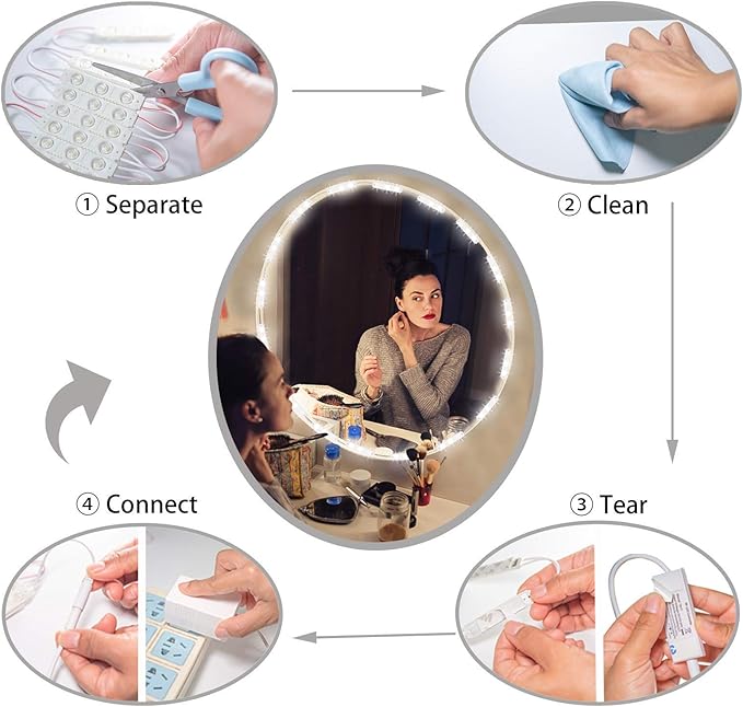 - Excellent Lighting: 13ft(4m) LED strip provides soft, perfect lighting for makeup or bathroom mirror