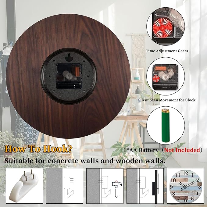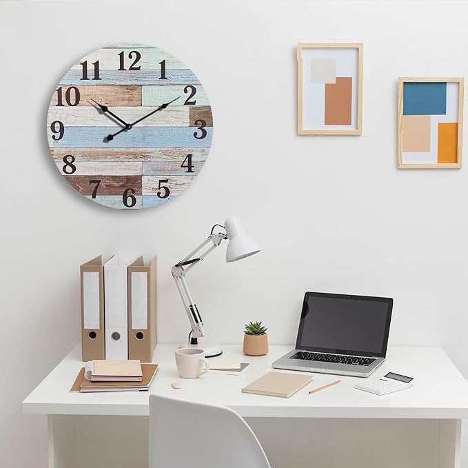 - Versatile home decoration tool:The perfect combination of retro vintage blues and wood textures is suitable for a variety of home styles such as Nordic style,industrial style,modern coastal style,It is not only an accurate clock,but also a wall art
