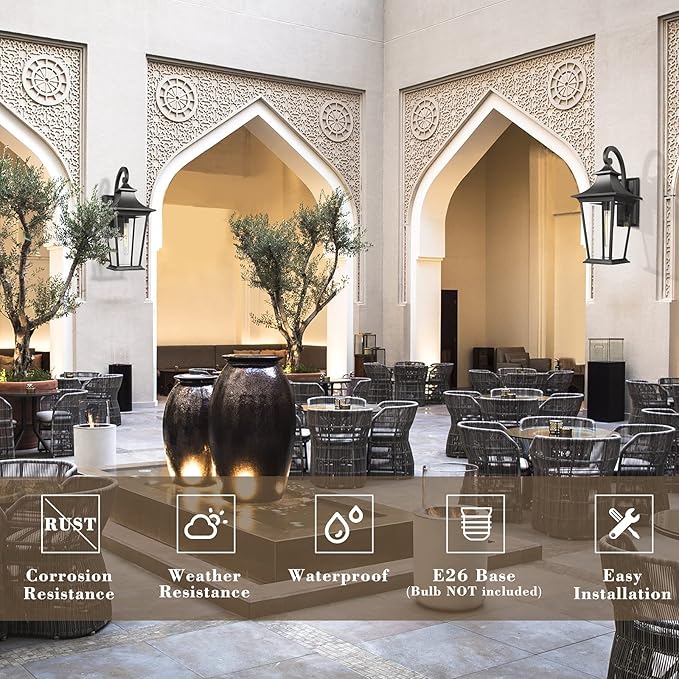 - Weather-resistant and suitable for wet locations, this 25" height extra large outdoor wall lantern features sturdy aluminum construction and clear bevel glass shade in a black finish
