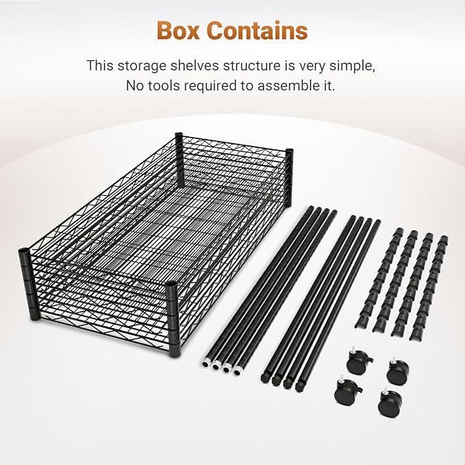 - Heavy-Duty Load Capacity: Each shelf holds up to 250 pounds, evenly distributed; supports up to1250 pound total weight capacity