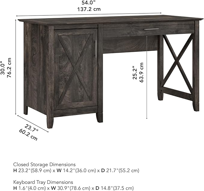 Bush Furniture Key West Computer Desk with Storage | Farmhouse PC Table for Home Office in Dark Gray Hickory | 54W x 24D
