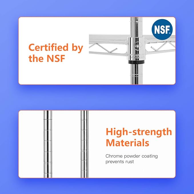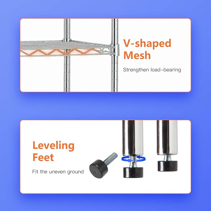 - CUSTOMIZABLE HEIGHT OPTIONS: Adjustable wire shelving design lets you tailor spacing between two racks for closet storage, garage shelving, or kitchen organization. Perfect for varying item sizes.