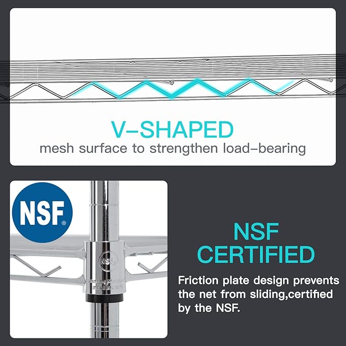 BestOffice | 6-Tier Wire Storage Shelves with Wheels | 18x48x82 | Chrome | Adjustable Racks | Heavy-Duty Metal Shelf, Holds Upto 510 lbs | No-Tool Assembly | Ideal for Home & Garage Shelving