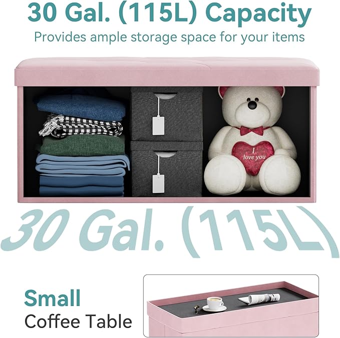 BRIAN & DANY Folding Storage Ottoman Bench, Ottoman with Storage, Foot Rest, Benches Seat for Bedroom, Living Room, Entryway, Long Shoes Bench, 15.7" x 31.5" x 15.7" Pink