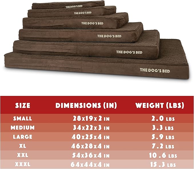 - Small Brown Plush 28x19x2” waterproof orthopedic dog bed. Solid 1” high density, orthopedic memory foam over a solid 1” base of high stability support foam with covers designed so that your bed fits your home decor seamlessly and your dog can stay close to your family