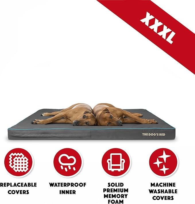 The Dog’s Bed Orthopedic Memory Foam Dog Bed, XXXL Grey/Blue 64x44x4, Pain Relief for Arthritis, Hip & Elbow Dysplasia, Post Surgery, Lameness, Supportive, Calming, Waterproof Washable Cover