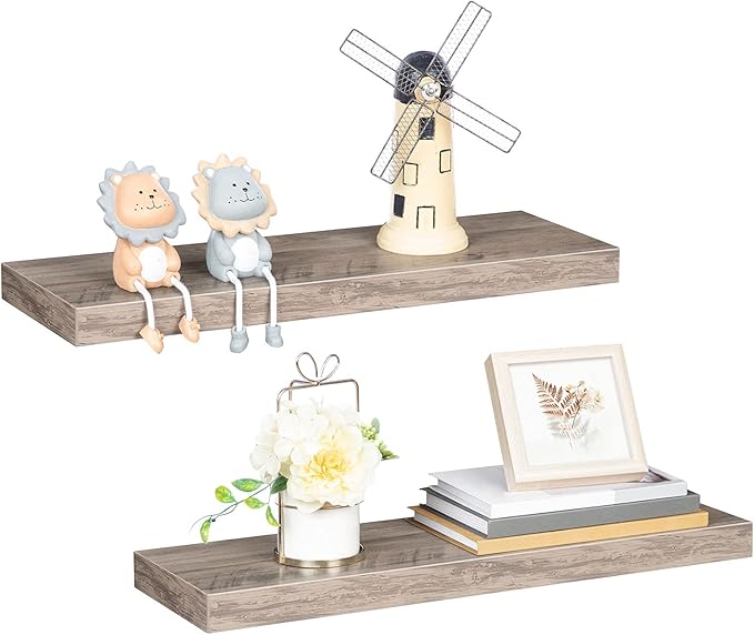 - Exquisite Wall Surface Decoration: Two classic and elegant greige wooden shelves can be placed on each wall surface of all household rooms. This floating shelf for room wall is not only for its decoration effect, but also for this wall shelves high practicality. It is an ideal place to display your beloved photos, trophies and other delicate ecorations