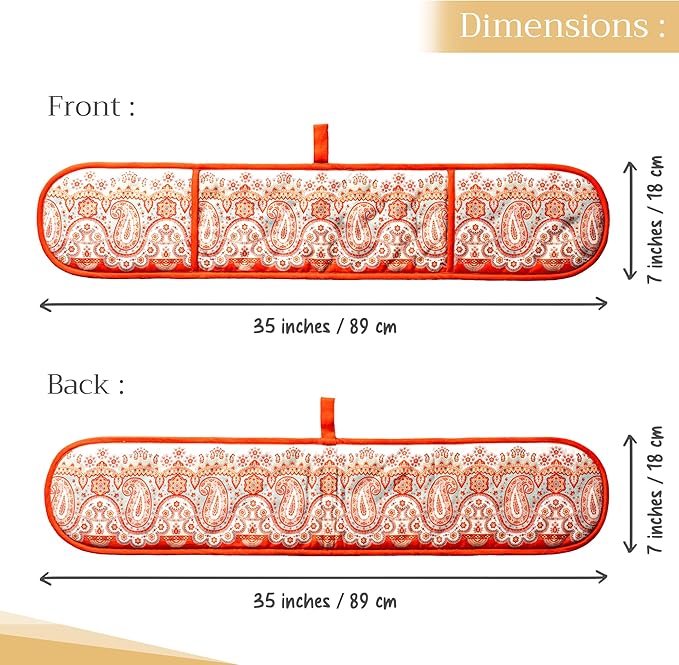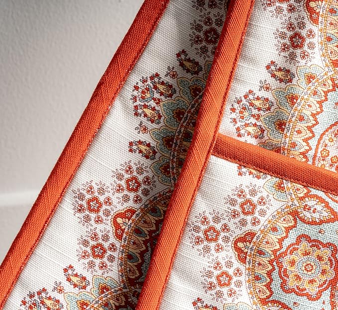 - Package Includes: Set includes 1 double oven mitt measuring 7.5" x 35", perfect for baking, roasting, and cooking. Made from 100% cotton for reliable heat protection and comfort. Designed in Europe and made in India