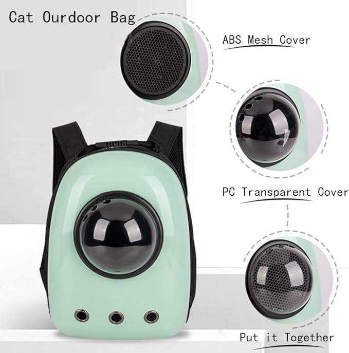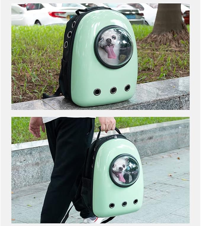 Pet Travel Carrier, Cat Dog Dome Space Capsule Bubble Backpack, Portable Waterproof Breathable Knapsack for Hiking, Traveling (Green 1)