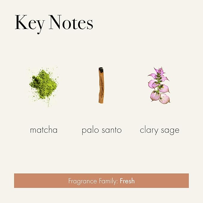 - SCENT - Retreat features smooth matcha green tea & earthy matcha leaves with crushed mint & vibrant ginger. Uplifting & purifying, herbal notes of clary sage entwine with sacred palo santo wood to transform your surroundings into a blissful space.